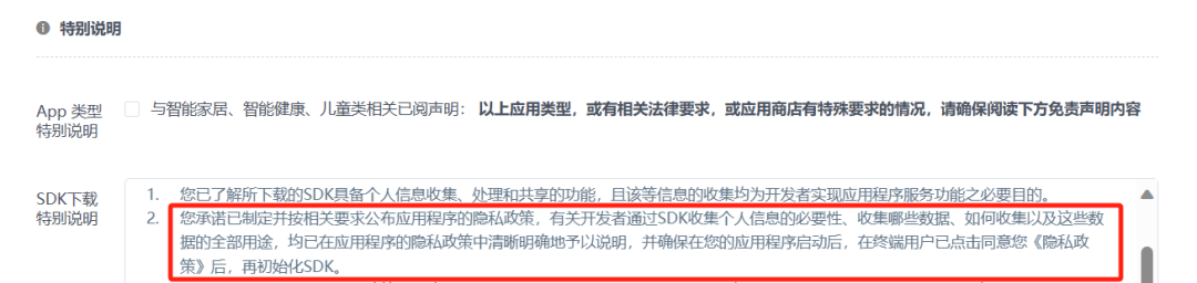 - 提供包括SDK下载文件、集成文档和API文档、隐私政策等,同时告知SDK处理个人信息的范围、种类、使用目的、需申请的相关权限、问题反馈和投诉渠道等,对于申请的权限应说明申请权限触发的时机和其必要性;