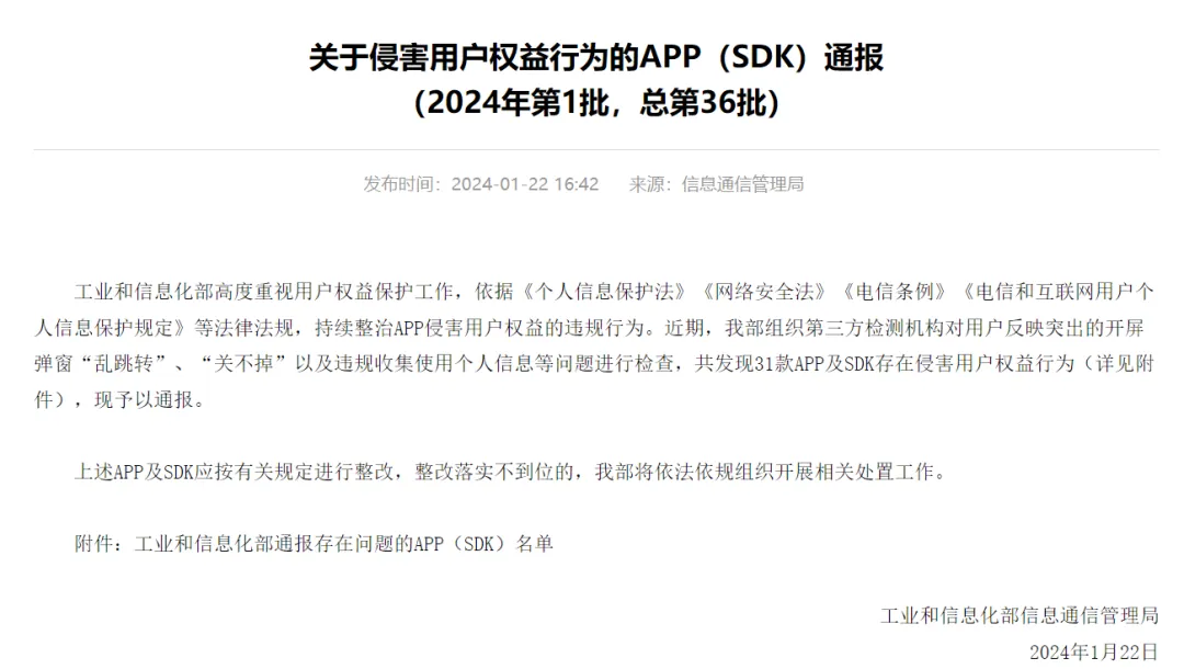 其实SDK的合规早已进入监管的关注范围,目前已有部分监管对SDK的违规行为进行了通报。并且针对SDK制定的标准也在陆续发布,相信不久,SDK行为整改规范后,App运营者的合规压力会小很多。