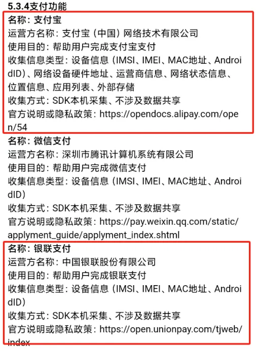 用户使用App业务功能过程中,嵌入的某些SDK可能会产生较多的收集行为,一般是代码层面的接口调用,因此对于收集行为用户大多是无法感知的。而App运营者需要在隐私政策中将第三方SDK的收集行为逐一列举,向用户明示SDK收集的目的、方式、范围,甚至频次。